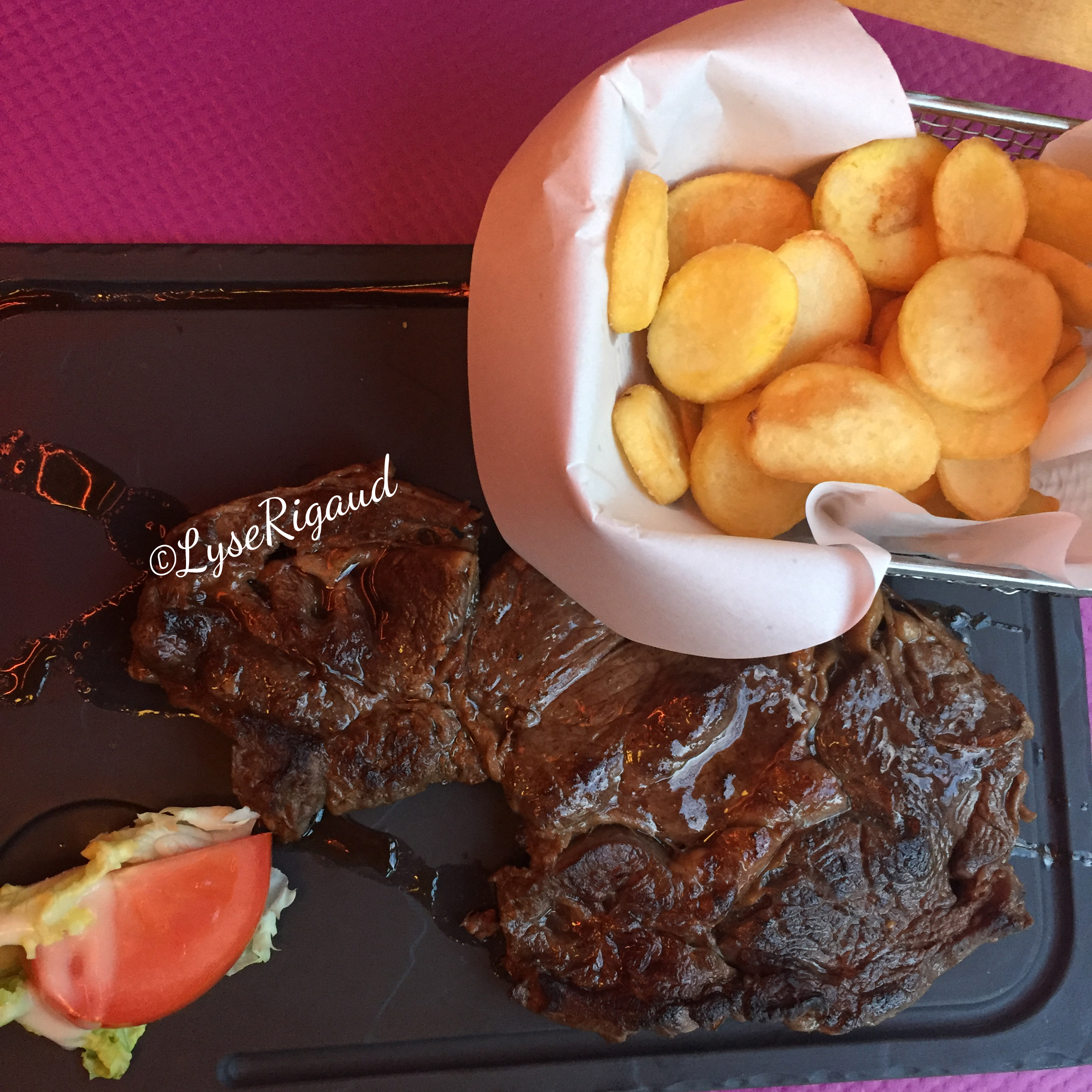 Dans l’assiette (ou plus précisément, sur l’ardoise), le plat est léger. C’est bien pour les appétits de moineaux, mais les gros mangeurs seront déçus. D’autant plus déçus que le cuisinier semble avoir mis tout le contenu de la salière dans le plat. (Je précise que nous étions deux, et que nous avions commandé deux plats très différents ; dans les deux cas, le sel gênait.) Heureusement, le dessert compense un peu cette déception.